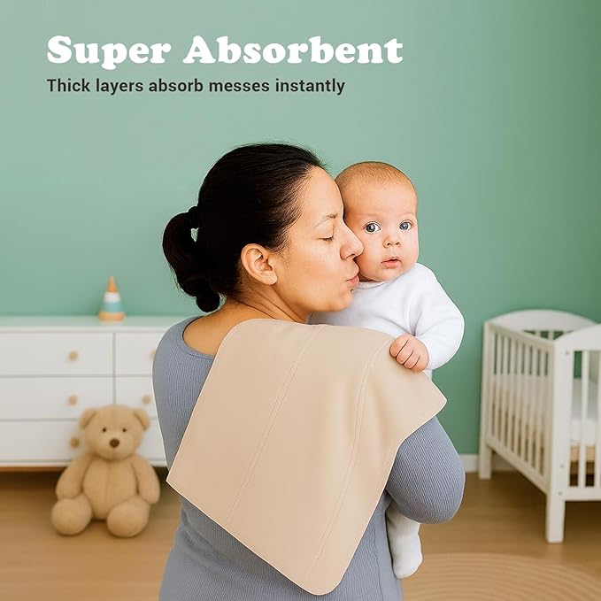 - Extra Coverage with 12 x 16 Inch Size: Each burp cloth measures a generous 12 x 16 inches, offering wide shoulder and chest coverage to protect clothes and keep feeding time stress-free. The durable double-layer design prevents bunching or slipping.