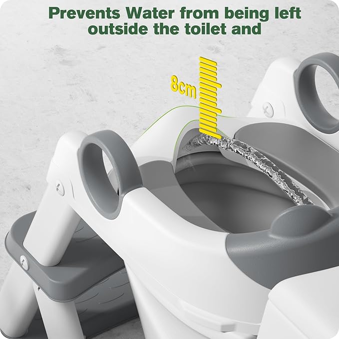 - Soft PU Cushion : Our potty training seat with step stool comes equipped with a waterproof PU seat cushion that is soft to the touch, providing protection for children's sensitive skin. It also remains comfortable to use during winter months without feeling cold.