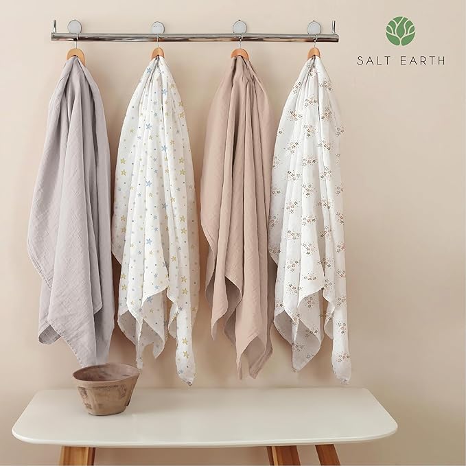 - Versatile Multi-Use: Our muslin swaddle blankets are not just for swaddling; they're a must-have for any new parent's arsenal of baby essentials. If you are looking to add practicality to your baby registry, our blankets have you covered. With their soft, absorbent fabric, they double as burp cloths providing convenience during feeding times. These can also be used as receiving blankets, cuddle blankets, nursing covers, sunscreen for strollers, play mat, changing pad, or even mini crib sheet.
