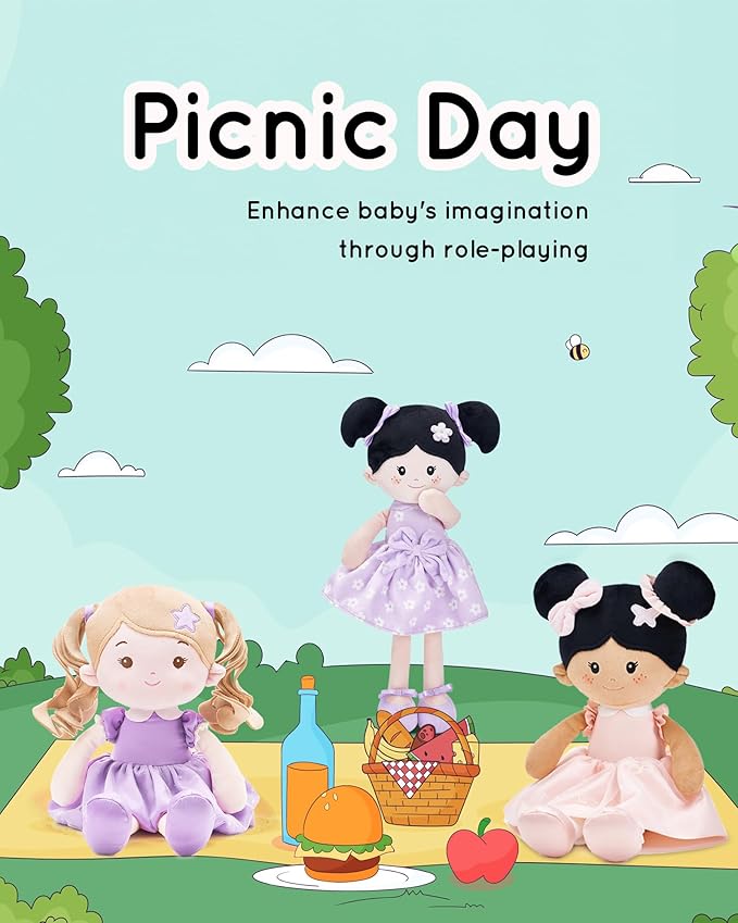 LeyaDoll Soft Baby Doll Toys (16''), My First Baby Rag Doll for 1 Year-Old Girl Birthday Gift, Christmas Plush Toys Gift for Toddler Kids Infants -Starlet Purple