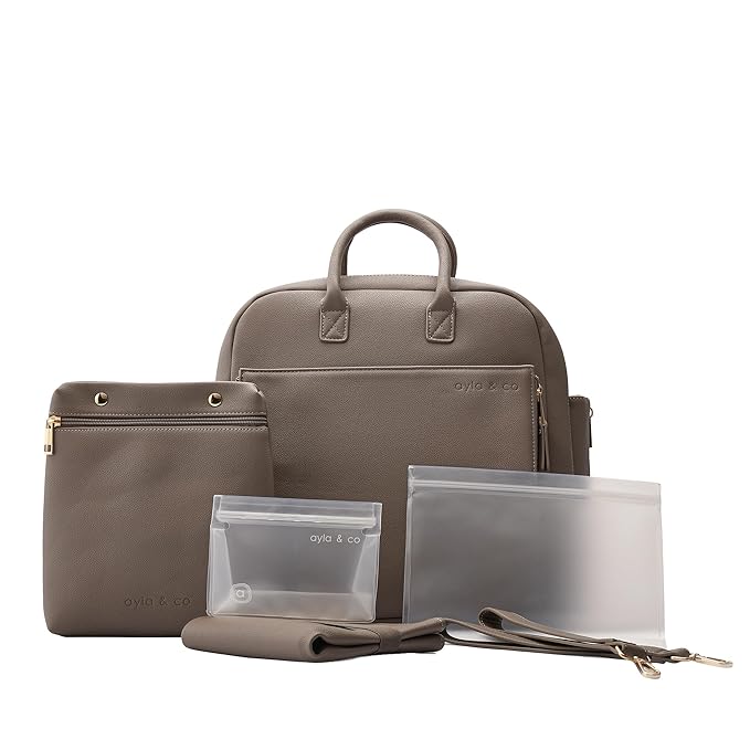 Ayla & Co Full-Size Diaper Bag Backpack, Baby Essentials Cross-Body Changing Bag for Baby Girl/Boy Convertible Straps Portable Tote Bag, Baby Changing Pad, Insulated Pockets & Pouch, Pebble