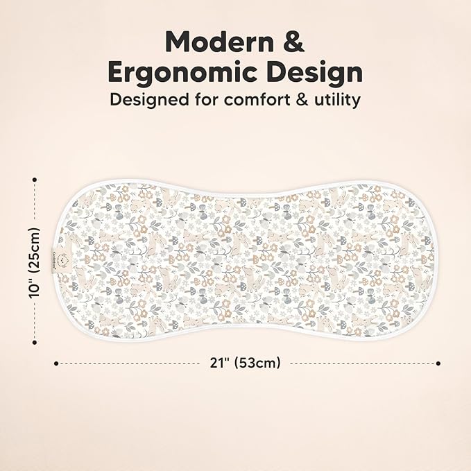 - Maximum Shoulder Coverage - Our burping cloths for babies are specially designed in figure-8 to ensure a secure fit, preventing the burp rags from slipping. Measuring 21" x 10", this neutral burp cloth provides ample coverage for your shoulders.