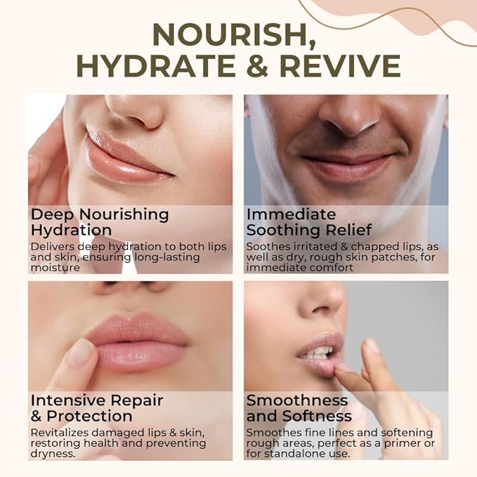 - Fast-Absorbing, Non-Greasy Formula: The lightweight, non-greasy balm absorbs quickly without leaving any residue. It moisturizes, hydrates, and revitalizes the skin, leaving it feeling soft, supple, and rejuvenated. Enriched with anti-aging properties, it helps to reduce fine lines and wrinkles. Use it as an overnight lip treatment balm for dry cracked lips, a cracked lips treatment repair, or a mouth wrinkle repair solution