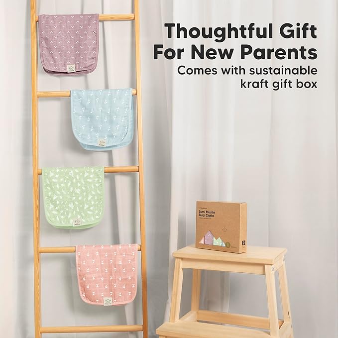 - Beautiful Neutral Palettes - The Lumi Muslin Burp Cloths are designed with gender neutral palettes for baby boys and girls. It is the perfect baby shower gift and baby registry gift for new parents. Comes with sustainable kraft gift box.