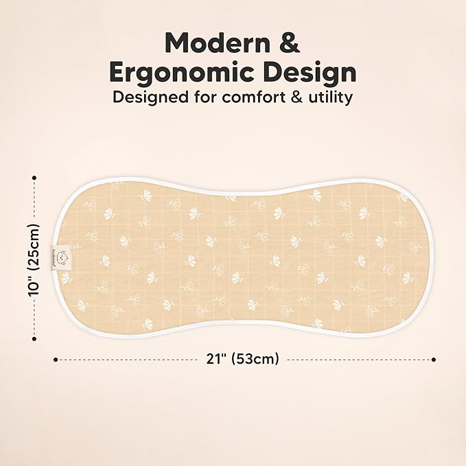 - Maximum Shoulder Coverage - Our burping cloths for babies are specially designed in figure-8 to ensure a secure fit, preventing the burp rags from slipping. Measuring 21" x 10", this neutral burp cloth provides ample coverage for your shoulders.