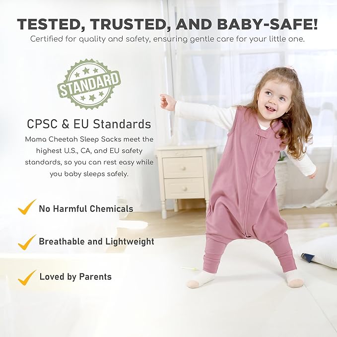 - 【IDEAL FOR CRAWLING BABIES & WALKING TODDLERS】— Mama Cheetah's wearable sleep blankets facilitate a smooth transition away from swaddling, fostering healthy sleep routines crucial for your baby's progress & well-being. With ample space to accommodate sleepwear and unrestricted leg movement, our sleep sack walkers promote a cozy sleep, while the foot opening promotes mobility. Machine washable & durable, this sleep sack with legs is made perfect for your little explorers & growing toddlers!