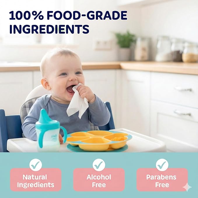 - Baby Food Grade Binky Wipes: Our wipes are made from natural ingredients and Non Toxic. They are free from alcohol, parabens, and other harmful chemicals, making them safe for daily use.