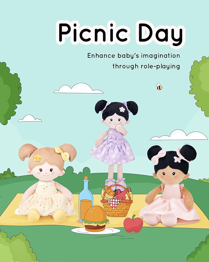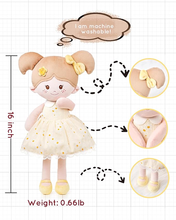 LeyaDoll Soft Baby Doll Toys (16''), My First Baby Rag Doll for 1 Year-Old Girl Birthday Gift, Christmas Plush Toys Gift for Toddler Kids Infants-Daisy Yellow