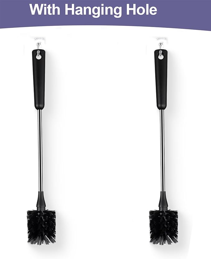 [2 Pack] Water Bottle Brushes, Stainless Steel Long Handle Baby Bottle Scrub Cleaning Brush for Sports Bottles, Cups, Dishes, Coffee Mugs, Glasswares, Tumblers, Wine Decanters
