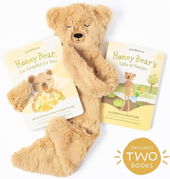 Slumberkins Honey Bear Snuggler & 2 Board Books Complete Set Bundle | Promotes Gratitude, Respect & Sharing | Social Emotional Tools for Ages 0+ (Honey Bear Snuggler Plush + 2 Board Books)