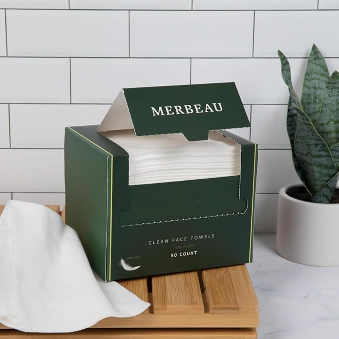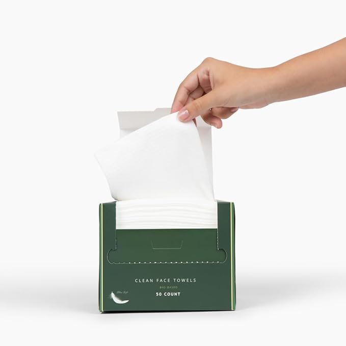 Clean Facial Towels for Sensitive Skin, 100% USDA Biobased Face Towels, 50 Count, Ultra Soft, Makeup Remover Dry Wipes, Cotton