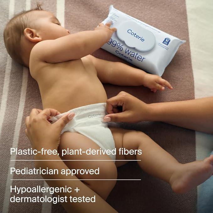 - THE BABY WIPES: Coterie unscented baby wipes are made with 99% water and 100% plant-based fibers. Each wipe is up to 30% larger than other brands, ultra-soft, and gentle on sensitive skin. Coterie wipes are EWG Verified and have received the National Eczema Association's Seal of Acceptance.