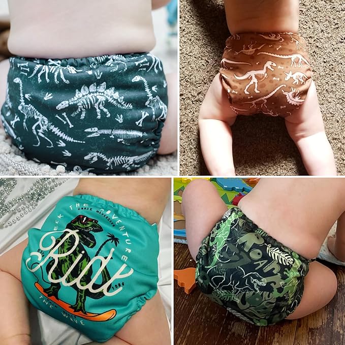 Mama Koala 3.0 Pocket Cloth Diapers for Babies with AWJ Lining, 6 Pack with 6 5-Layer Natural Cloth Diaper Inserts - Reusable and Washable Pocket Diapers(A-It's Dinosaurs)