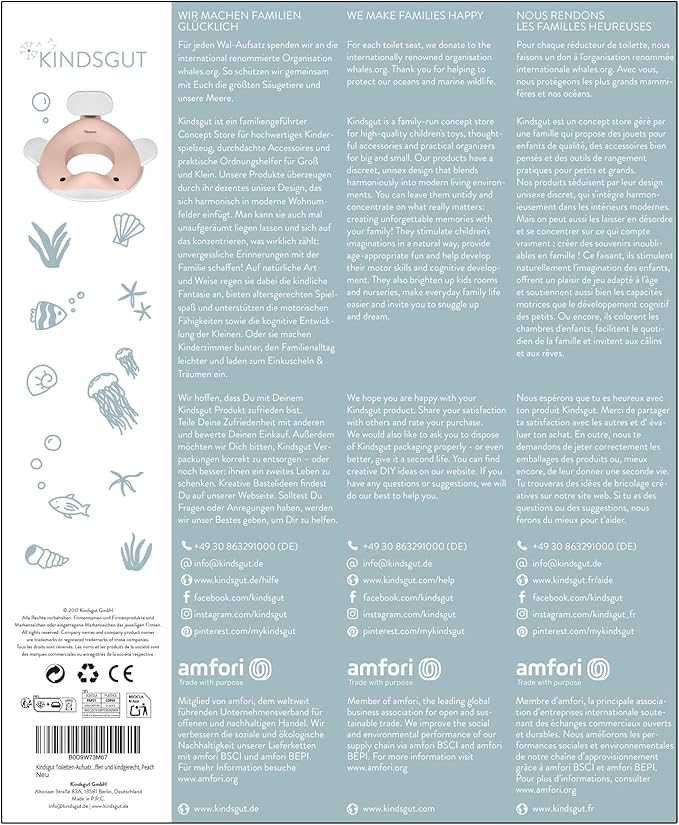 Kindsgut Potty Training Seat in whale design, designed in Germany, suitable for all toilet shapes non-slip toilet seat, Peach