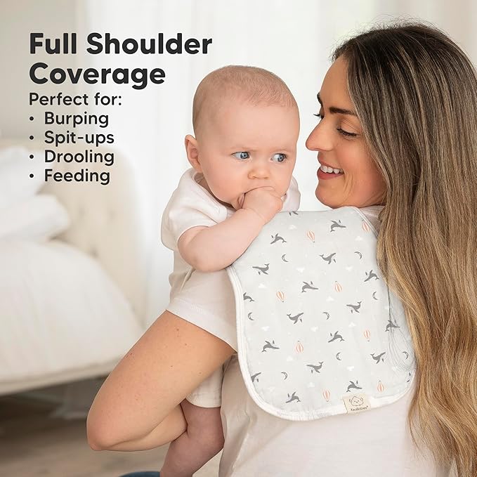 - Stylish and Gender Neutral - Our absorbent burp cloths are designed to seamlessly match with any outfit for baby girls and boys. Embrace the essential clean look with our baby burp cloths. One of the must-have baby essentials.