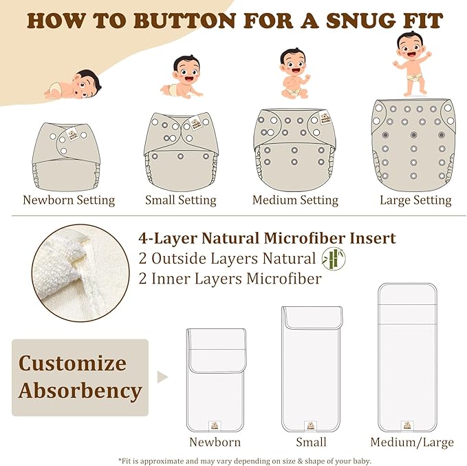- ULTIMATE ABSORBENCY - Including six adjustbale 4-layer natural blend polyester cloth diaper inserts. Blowout free days and leak free nights guaranteed!