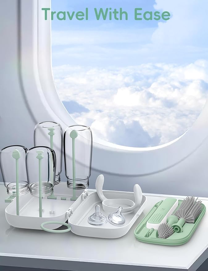 - Full Set for Travel Essentials & Daily Use: Our complete travel baby bottle brush cleaning kit includes an electric brush, nipple brush, straw cleaner, drying rack, and compact storage box – all organized in one convenient travel bottle cleaner kit that fits easily in any diaper bag