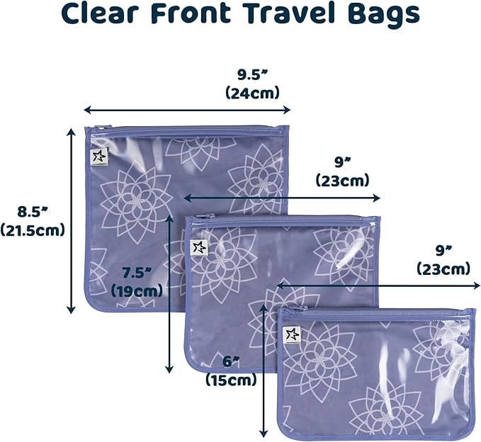 • TRAVEL MUST HAVES: Useful for long trips or on the go everyday travel. Featuring a zipper closure and clear front that allow you to find things easily and get to them quickly. The 3 convenient sizes fit easily in luggage, diaper bags and most hand bags.