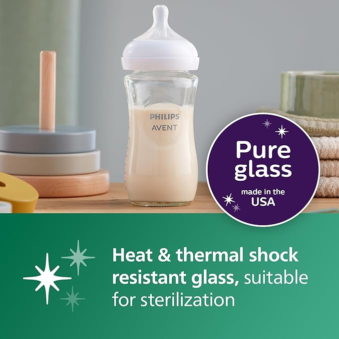 - Philips Avent Natural glass baby bottles supporting your baby's natural drinking rhythm: baby controls the pace of the milk flow, just like breastfeeding