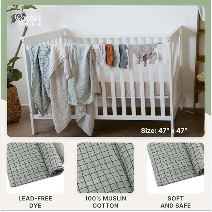 - LARGE 47 X 47" SIZE - Each baby blanket swaddler is generously sized at 47 x 47" of soft, comfortable and breathable gauze muslin cotton. The Parker Baby Swaddling Blankets are large enough to easily wrap or swaddle babies from newborns and infants to toddlers.