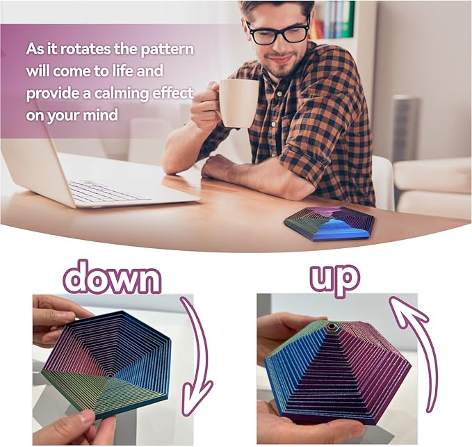 - 3D Printed Toy: Made using advanced 3D printing technology, this hexagon spiral toy is well-made with great attention to detail. The smooth edges and ergonomic design make it comfortable to handle, ideal for relieving anxiety and calming fidget needs.
