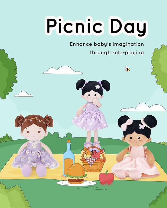 LeyaDoll Soft Baby Doll Toys (16''), My First Baby Rag Doll for 1 Year-Old Girl Birthday Gift, Christmas Plush Toys Gift for Toddler Kids Infants-Daisy-Girl-Light-Purple