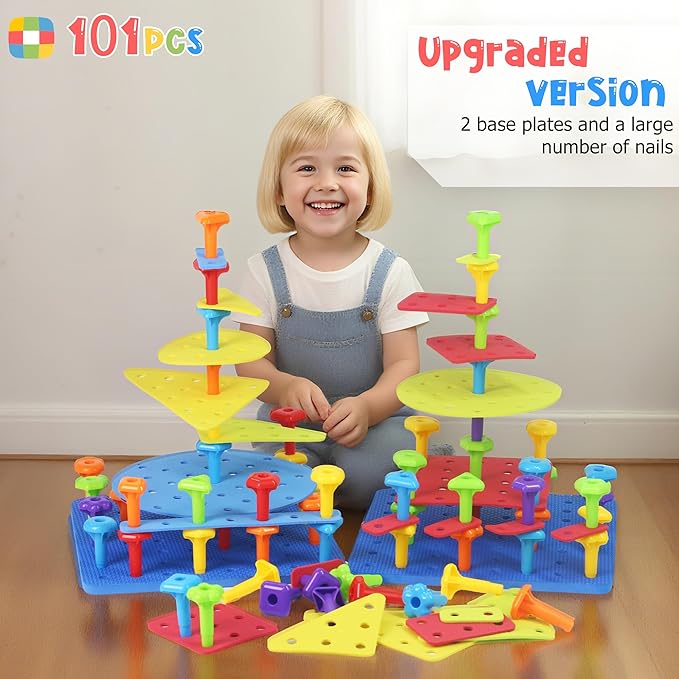 - Upgraded version safety: The upgraded plastic pegboard toy, each part does not have sharp corners, great hand feel so that children's fingers are comfortable, the product has passed the international testing and certification CPSIA and ASTM