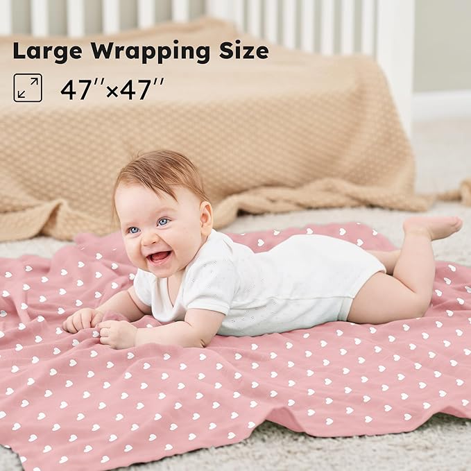 - Universal Size: Measuring 45*45 inches, baby receiving blankets provides ample space for effortlessly wrapping newborns from shoulders to feet. It recreating comforting reminiscent of the womb to soothe your little one, preventing newborns from being startled awake. This large muslin blanket is suitable for swaddling newborns as well as toddlers who are taking their first steps.