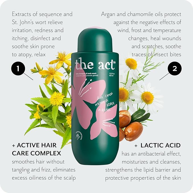 - 🌈 Gentle Chamomile Shampoo and Kids Body Wash: Specially formulated for children aged 3 and up, The Act green apple-scented shampoo provides soothing cleansing for delicate skin and fine hair. With over 90% natural oils and extracts like chamomile and argan oil, it guarantees a comfortable bath experience without tears, making it an ideal choice for everyday use.