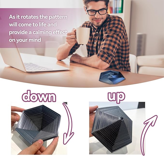 - 3D Printed Toy: Made using advanced 3D printing technology, this hexagon spiral toy is well-made with great attention to detail. The smooth edges and ergonomic design make it comfortable to handle, ideal for relieving anxiety and calming fidget needs.