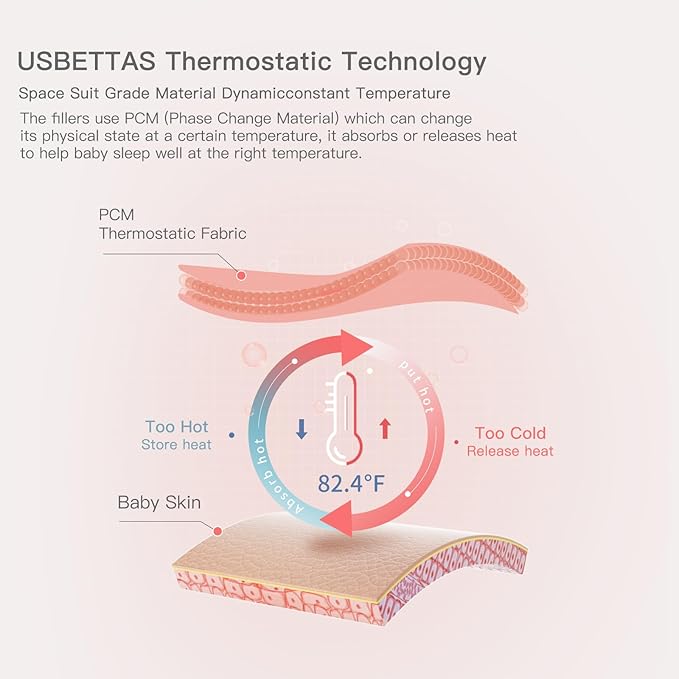 • Thermostatic: Our Thermostatic sleep sack have used 79% polyester fiber and 21% viscose fiber (thermo-material) as filling material. This thermo-material is designed for optimal temperature regulation, ensuring a comfortable sleeping environment throughout all seasons, and preventing your child from overheating or catching a cold;