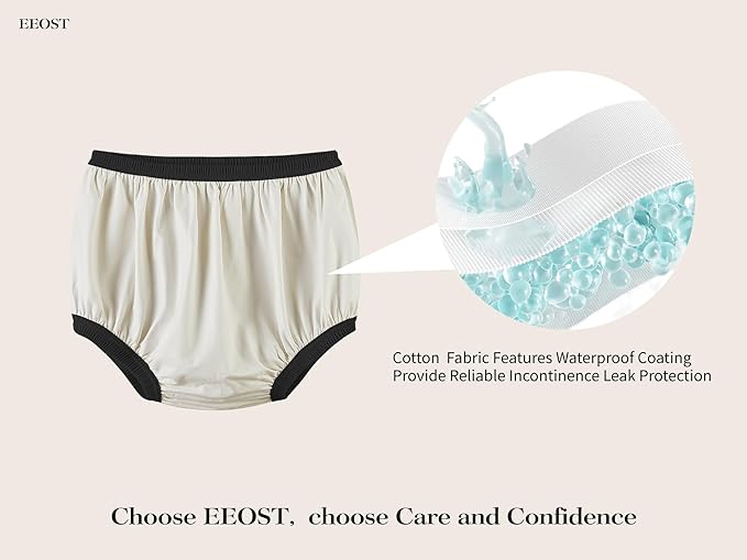 - SILENT AND COMFY LIKE REGULAR UNDERWEAR:Our Adult diaper cover is made with a 100% cotton outer layer, and it's designed to be noiseless when worn. Unlike other plastic or vinyl waterproof incontinence pants, our cloth diaper covers won't make embarrassing sounds. This means you can go about your day in comfort and privacy.