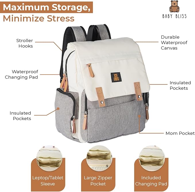 Baby Bliss Alexander Diaper Bag for New Parents - Versatile Diaper Backpack Available in 4 Color Options, Features Organizational Pockets, Perfect for Daily Use.