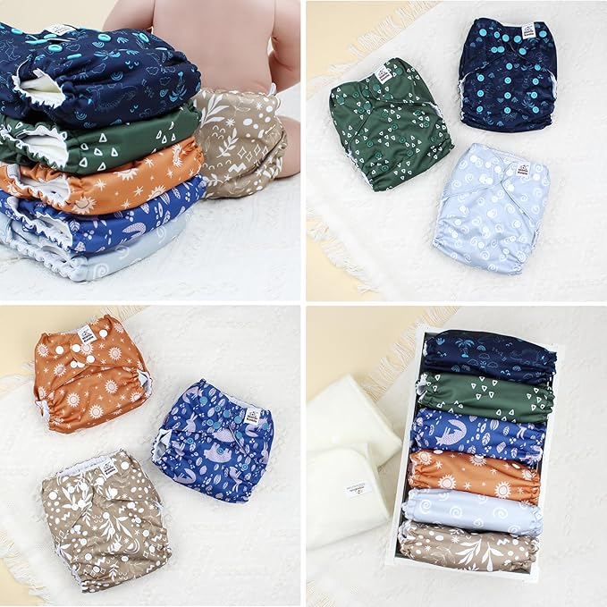 - ULTIMATE ABSORBENCY - Including six adjustbale 4-layer natural blend polyester cloth diaper inserts. Blowout free days and leak free nights guaranteed!