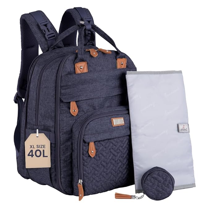- Perfect Twin Baby Shower Gifts! Your Baby Registry Search ends here! Extra Large Diaper Bag Backpack expands from 30 to 40 liter capacity, 50% more storage than our Original Diaper Backpack! Includes pacifier holder and an easy wipe-clean foldable changing mat (size: 23''x14.5"), stroller straps - everything on-the-go parents need!