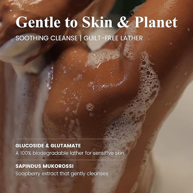 - Ultra-Gentle Formula Specifically Designed for Sensitive Skin - Our sensitive body wash features an advanced sulfate free body wash formula that's also free from CAPB and other harsh surfactants. Enriched with Sodium Lauroyl Oat Amino Acids and Sapindus Mukorossi Fruit Extract, this gentle cleanser effectively cleans without stripping your skin's natural moisture barrier. It's the ideal body wash for sensitive skin that provides thorough cleansing while maintaining skin's natural pH balance