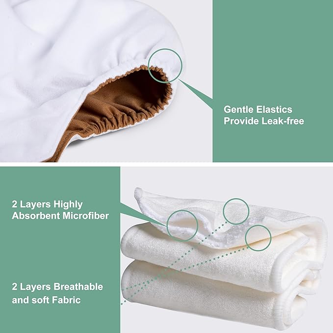 - Absorbent and Soft Insert: Inserts are made of 4 layers fibre, the strong absorbent material with breathability and softness is gentle on your baby’s bottom, keep your baby comfortable and happy; The inner suede cloth touches baby, and wicks moisture away from baby's bottom to the insert