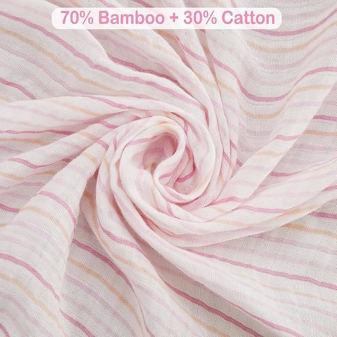 - 【Superior Softness】Swaddle Blanket made of cotton muslin fabric, these blankets keep your little one comfortably snug, preventing overheating and providing the perfect environment for peaceful rest.They get softer with every wash, ensuring a cloud-like feel against your little one's delicate skin.