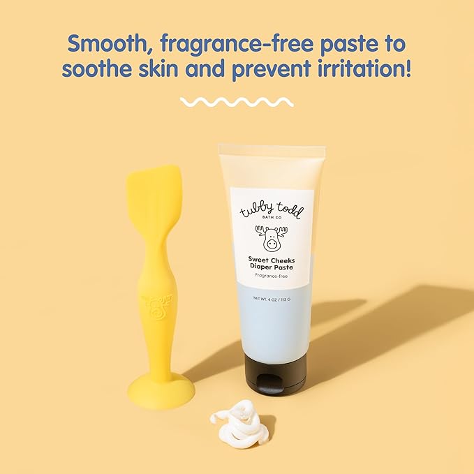 TUBBY TODD Sweet Cheeks Diaper Paste & Spatula - Diaper Rash Cream with 14% Zinc Oxide - Hypoallergenic - For Soothing and Protecting Sensitive Skin - 2 Pack, 4oz & 7.9oz