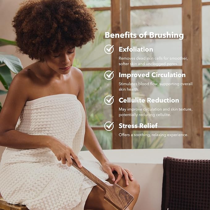 - 💧 ELIMINATE DRY SKIN: Easily remove dead skin and encourage skin renewal with this exfoliating brush. Use in upward strokes to lift dirt and dry skin cells, revealing smooth, refreshed skin. It also doubles as a cellulite and lymphatic scrub, helping to reduce the look of cellulite and bumps for a smoother appearance.