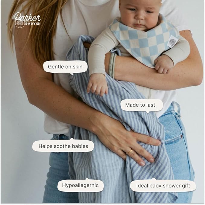 - LARGE 47 X 47" SIZE - Each baby blanket swaddler is generously sized at 47 x 47" of soft, comfortable and breathable gauze muslin cotton. The Parker Baby Swaddling Blankets are large enough to easily wrap or swaddle babies from newborns and infants to toddlers.