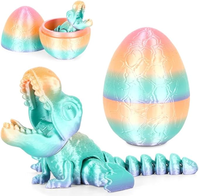 - 【3D Printed Dragon】3D Printed Toys & Dinosaur Egg- dragon eggs with dragon inside-With a special articulated design, the 3D printed Dinosaur is full-body movable, allowing for flexible posing and positioning. The Dinosaur egg is threaded for easy opening and closing,and also nice to hold other 3d printed animals.
