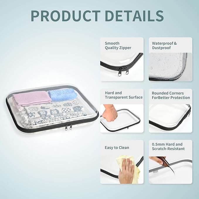 - Clear Design: The transparent design hard shell zipper case allows you to quickly find what's inside without opening the box. Save time and avoid the annoyance of searching for items with these clear transparent storage boxes.