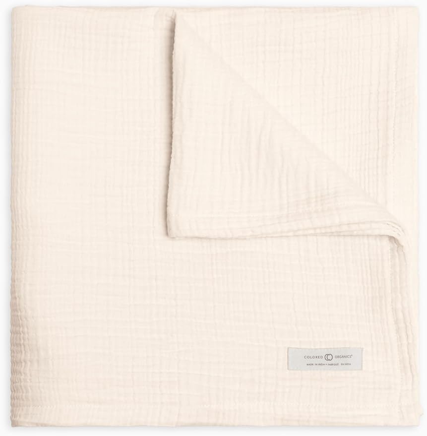 Colored Organics Baby Organic Cotton Swaddle - Infant Receiving Blanket - Ivory Muslin