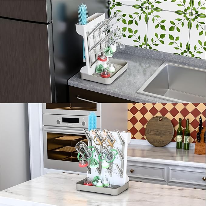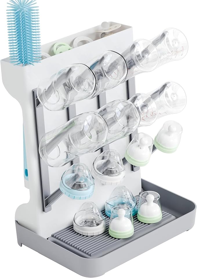 SuoXing Vertical Baby Bottle Drying Rack,Space Saving Countertop Baby Drying Rack for Bottles,Large Baby Bottle Station Stand,Bottle Rack Dryer for Brushes,Pacifiers,Baby Accessories Organizer,Grey