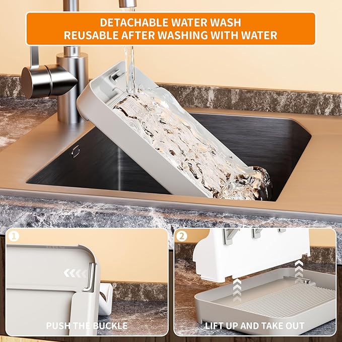 - 【Tilt Bracket/Prevent Water Accumulation】It only takes 1 minute to insert and complete the installation,Its upright design keeps your surfaces clutter-free,Adopting an 81 ° inclined bracket makes it easier for water to slide off,Detachable drip tray can prevent water accumulation and make cleaning easier