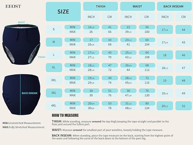 - Ultimate Comfort and Secure Fit:This waterproof underwear has an adjustable waist drawstring, elastic waist and leg bands, and leg gasket seals that ensure it stays in place,provide extra protection against leaks. The outer fabric is breathable, quick to dry, and the inside is super soft, ensuring a noiseless experience. No embarrassing moments!The stitching is flat, and the gentle elastic bands at the waist and legs are gentle on the skin.