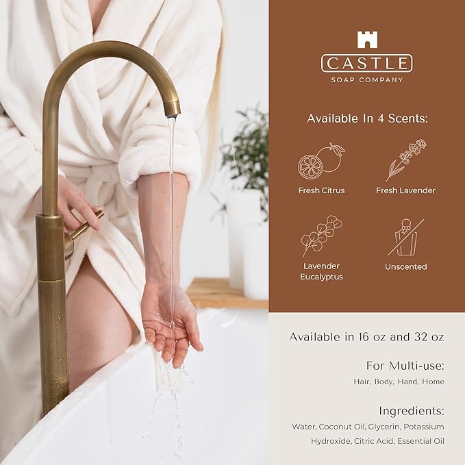 - VERSATILE MULTI-USE FORMULA: The Castle Soap Company All-Purpose Castile Soap is perfect for all your cleaning needs. Use it as a gentle hair cleanser, body wash, hand soap, or even for household cleaning tasks like dishes or countertops.
