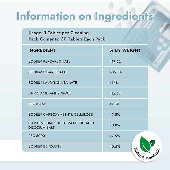 - ๐๐๐๐ ๐๐ง๐ ๐๐๐ง๐ญ๐ฅ๐ ๐๐ง๐ ๐ซ๐๐๐ข๐๐ง๐ญ๐ฌ ๐๐จ๐ซ ๐๐๐๐ฒ ๐๐ญ๐๐ฆ๐ฌ: Formulated with baby items in mind, our tablets are mild yet effective, ensuring no residue post-cleaning. This non-toxic formula is the best choice for maintaining the hygiene of your baby's feeding equipment, giving moms peace of mind.