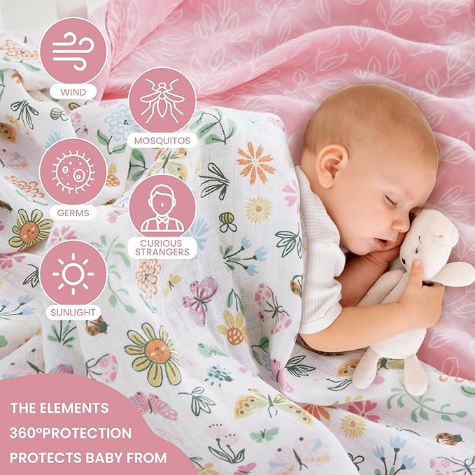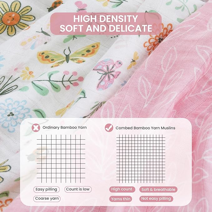 - 【Versatile Use】Our swaddle blanket can also be used as receiving blanket, cuddle blanket, nursing cover, sunscreen for strollers, burp cloth, car seat cover, play mat, changing pad, mini crib sheet and so on. Each set of muslin swaddle blankets with a pretty box is best baby shower gifts for new mothers and newborns.
